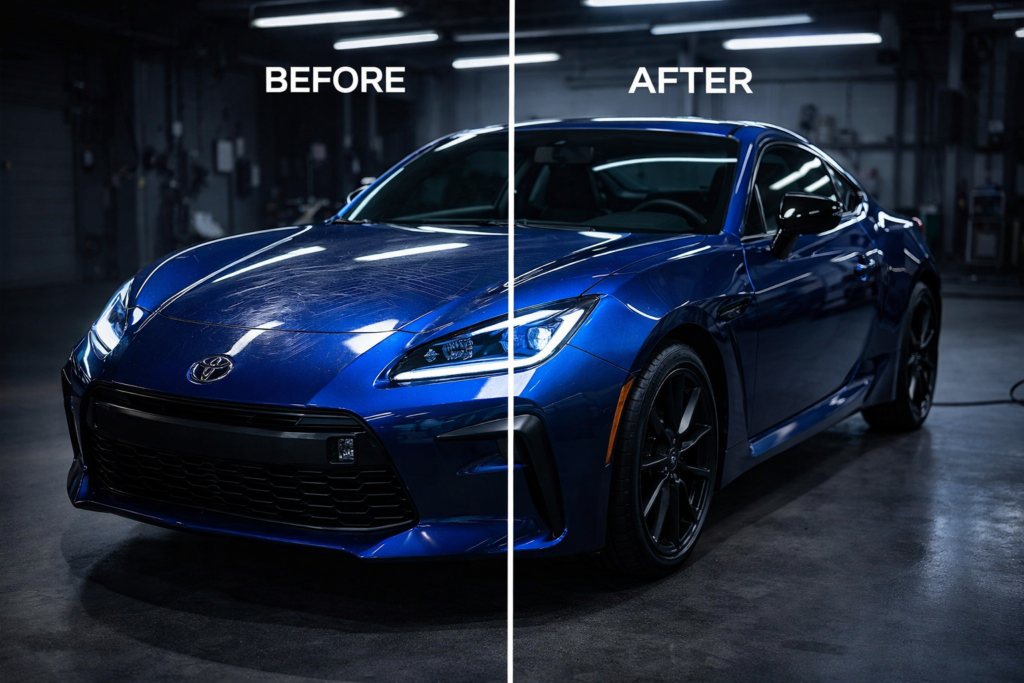 Using advanced machine polishers and cutting compounds, we safely remove deeper scratches and paint defects without damaging the clear coat.